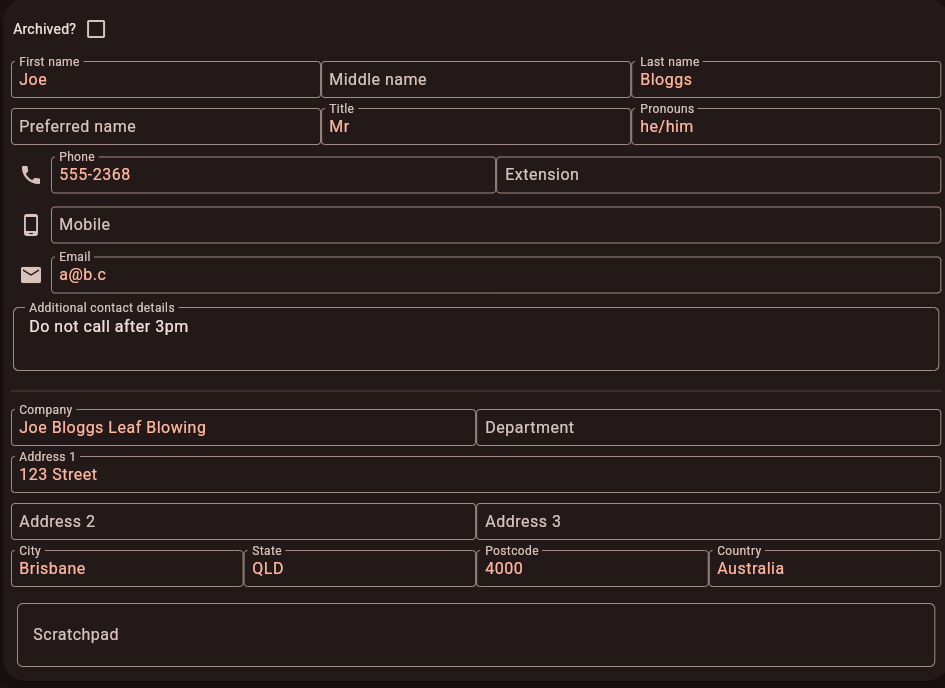 The core purpose of Jasper is to store customer details. Each customer record has fields where you can