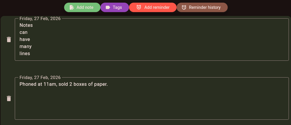 customer notes feature for dated information)